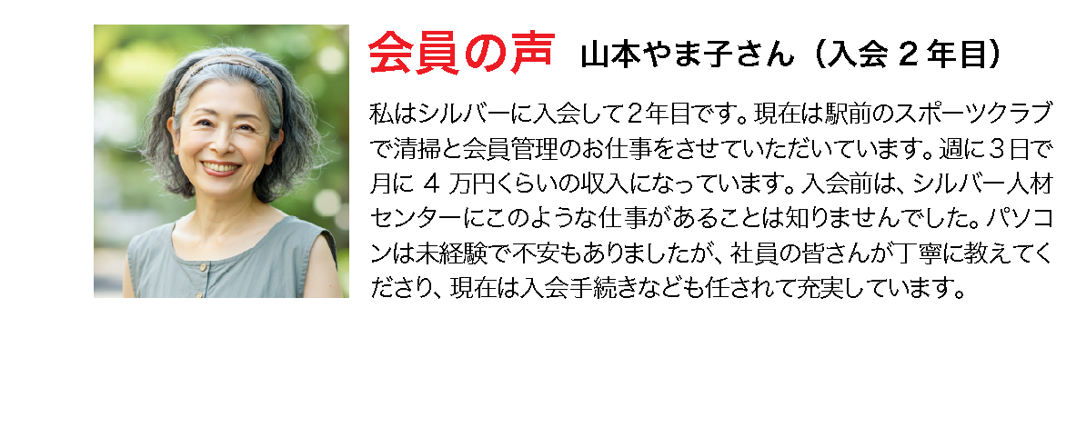 シルバー人材センターの事業を多方面からサポート