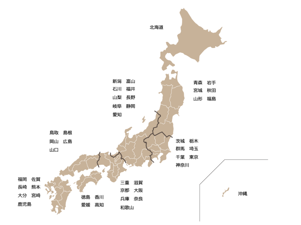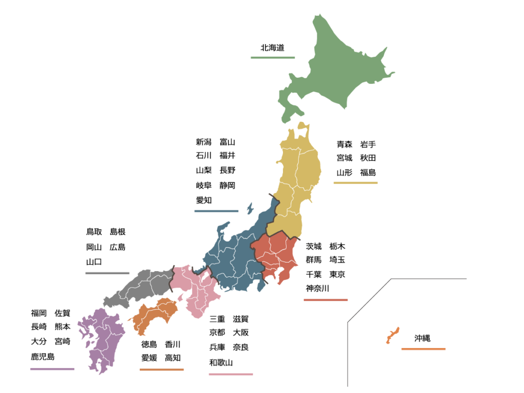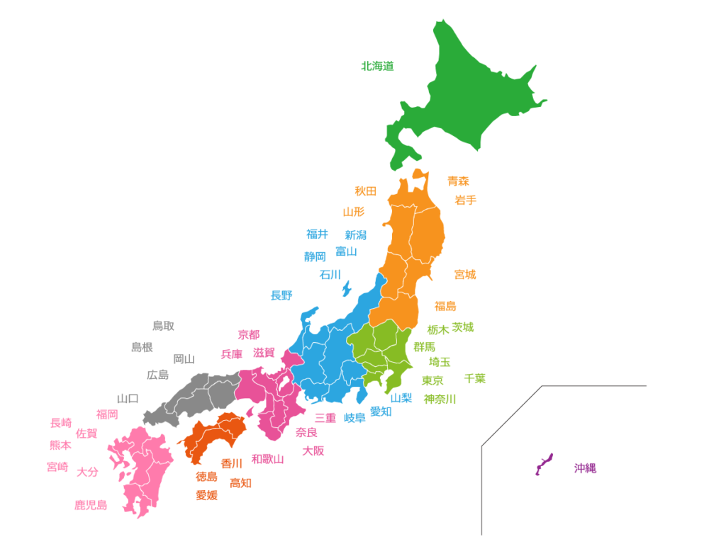 それでは練習です。接近の原則を使って、下にある日本地図を使って都道府県を地方別にグループ分けしてみましょう。
