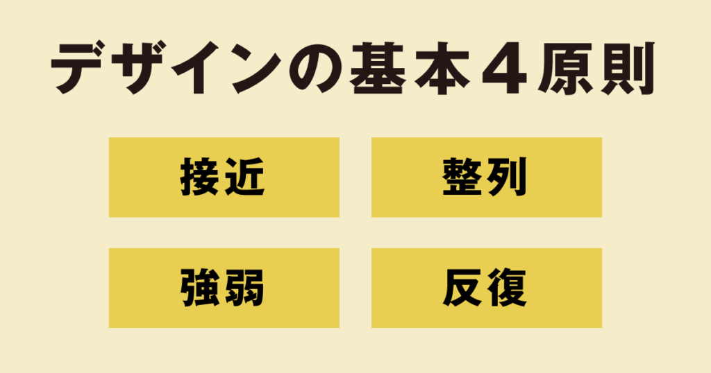 まずは、接近・整列・強弱・反復について学んでいきましょう。デザインには多くの定石のようなものがありますが、この4つは基本4原則と言われています。