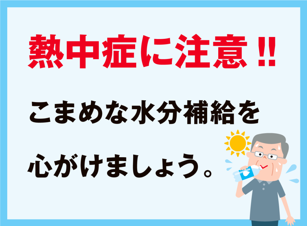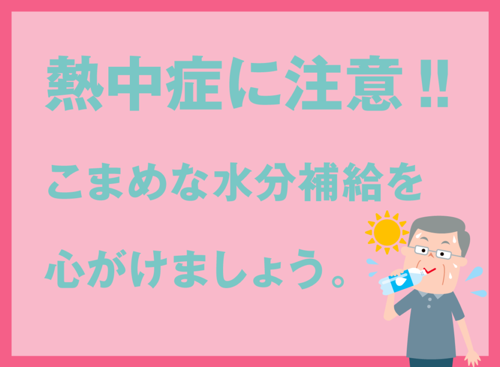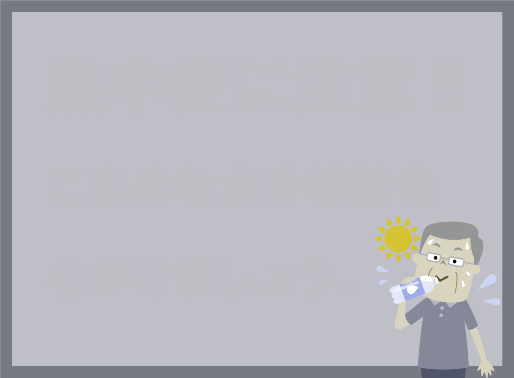 熱中症についての注意書きのポスター。この画像には、ある配慮が足りていません。ピンク×水色の配色は、視覚障がいのある方にとっては、下記のような見え方になります。