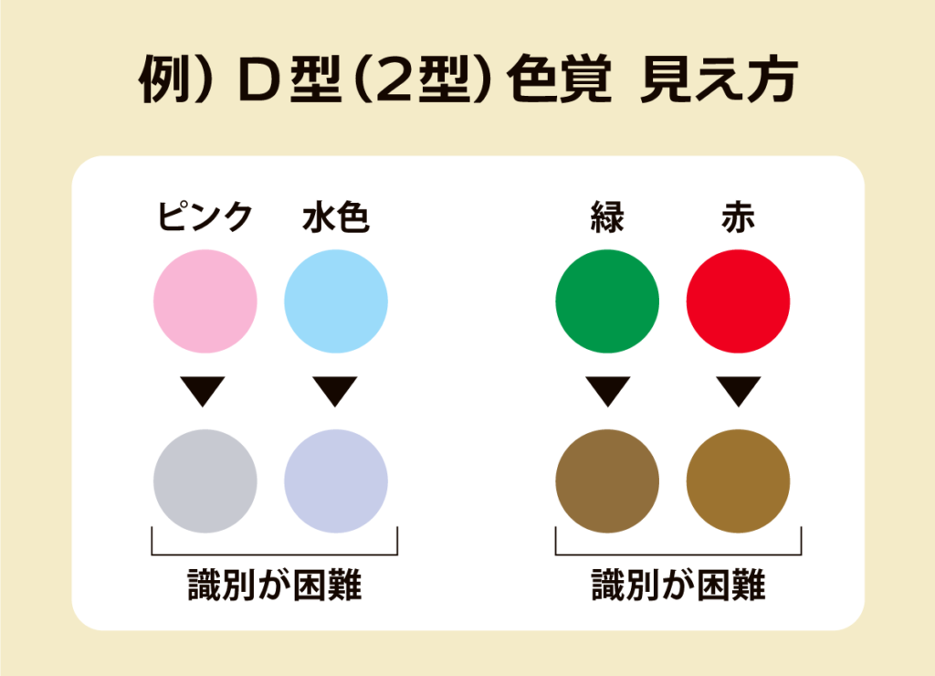 このように色の組合せに配慮ができていないと、特定の人には伝わらないデザインに仕上がってしまいます。
