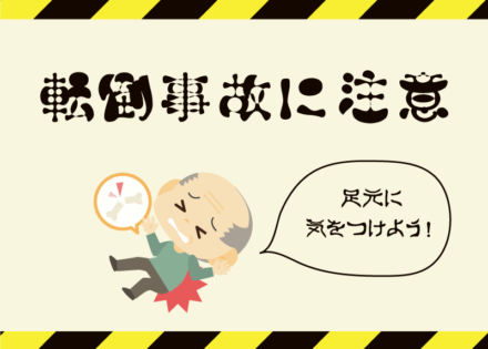 トラテープ(黄色と黒の斜めのストライプ模様)は、危険箇所や立ち入り禁止区域を示すときに利用されています。この模様を見ると、多くの人が「危険がある」ということを瞬時に理解できます。さらに、イラストを大きく強調することで、内容が即座に理解でき、文字が読めない方にも理解が促進されます。