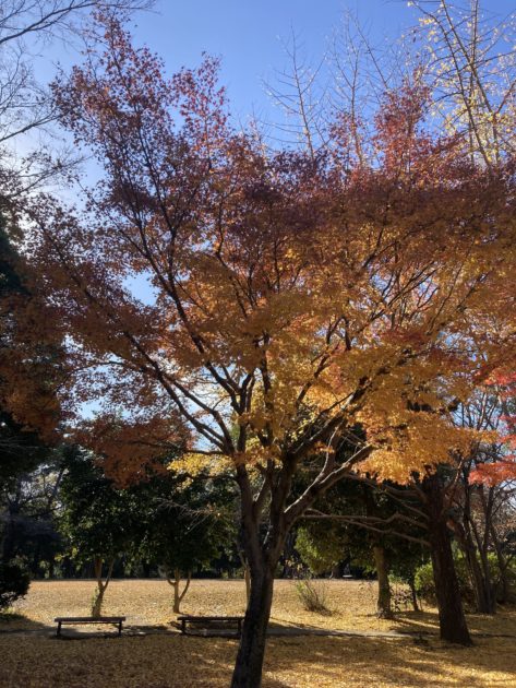 少し前ですが、紅葉が綺麗な頃、愛犬を連れてお友達と航空公園にお散歩に行きました。